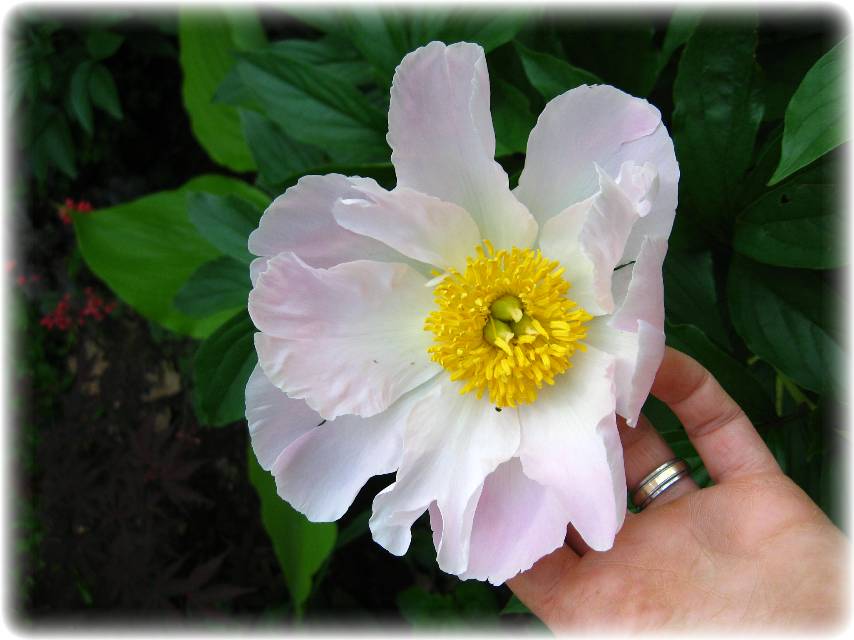 ReplyDeleteI love the Peonies and your favorite is (now) my favorite. It is so lovely! What do you do to keep the blossoms from falling to the ground though. Mine are always so heavy and end up on the ground the day after they've bloomed. disheartens me so! Thank you for sharing your story about the "certificate." I've been at the cusp of those types of situations more times than I care to mention here. It is a very difficult position to be in. I like your perspective on it. I also wanted to mention my love of your many different bracelets. As I went through the Peony pictures I noticed a different bracelet in each of them. Those too are lovely. Have a beautiful day and thank you for sharing from your heart.